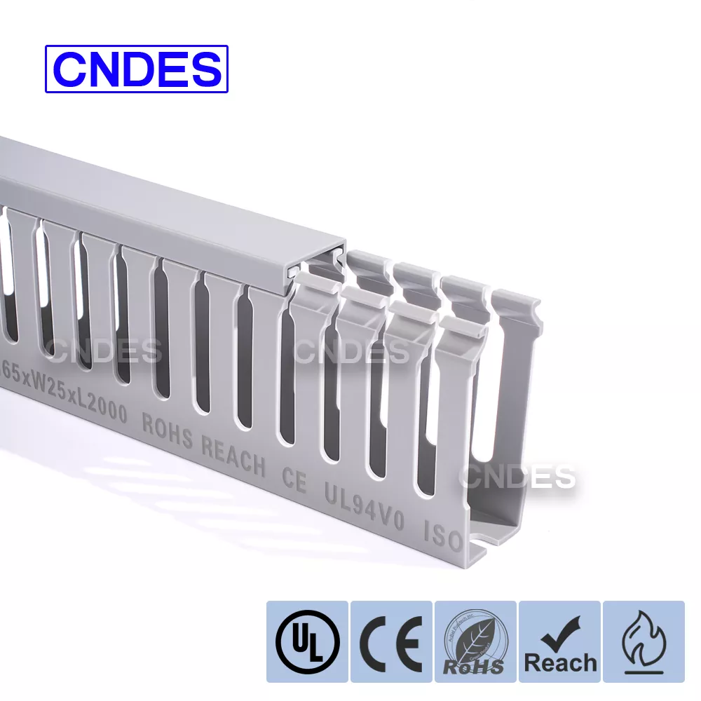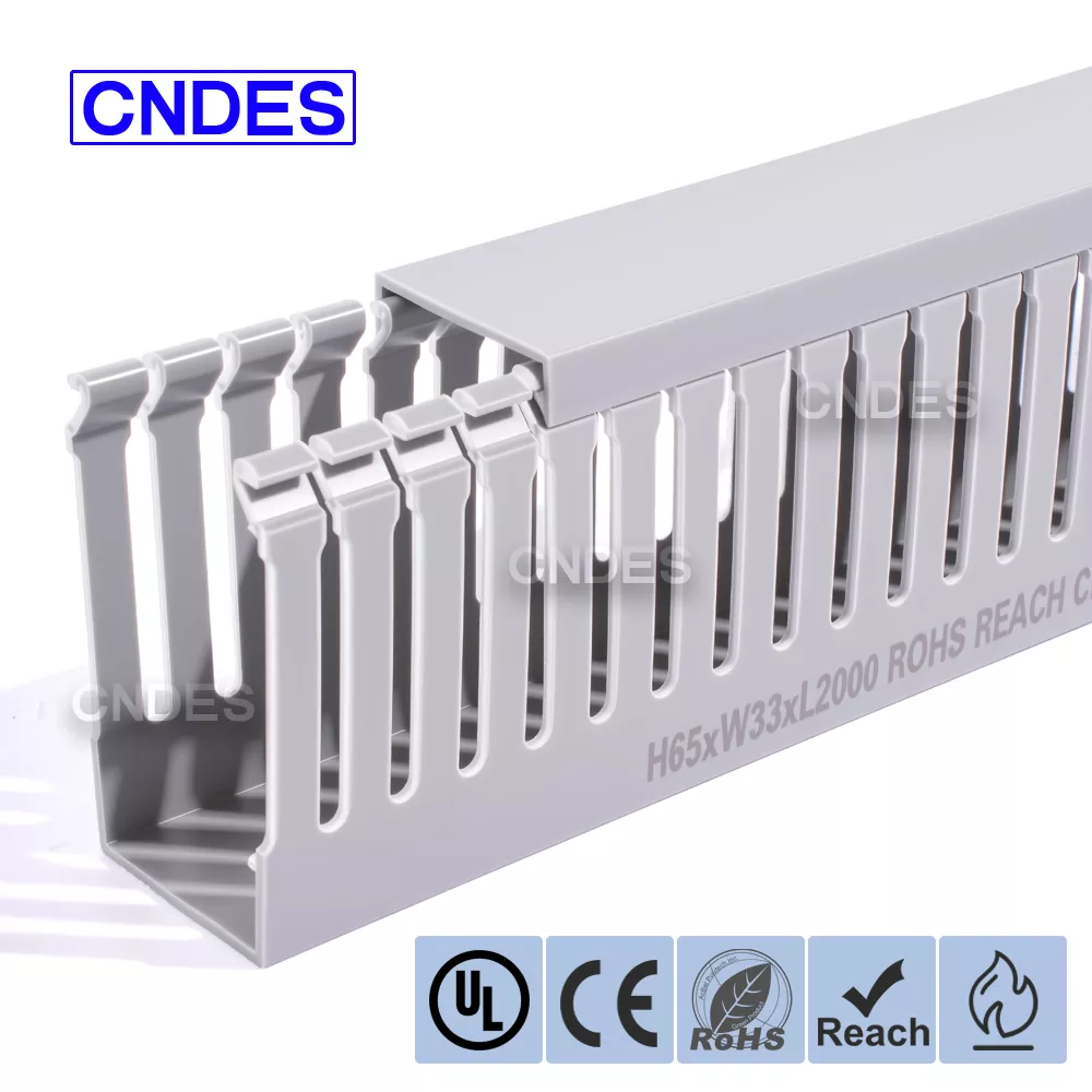 CNDES - фабрика по производству кабельных каналов из ПВХ с 24-летним опытом. Промышленный кабельный канал из ПВХ с прорезями высотой 65 мм, изготовленный по индивидуальному заказу, является идеальным решением для организации и защиты проводки в средах с высокой плотностью размещения, таких как промышленные панели управления, средства автоматизации и машинные установки. Благодаря высоте 65 мм он предлагает достаточно места для размещения больших пучков кабелей, обеспечивая при этом оптимальную защиту от таких факторов окружающей среды, как пыль, влага и механические повреждения.
