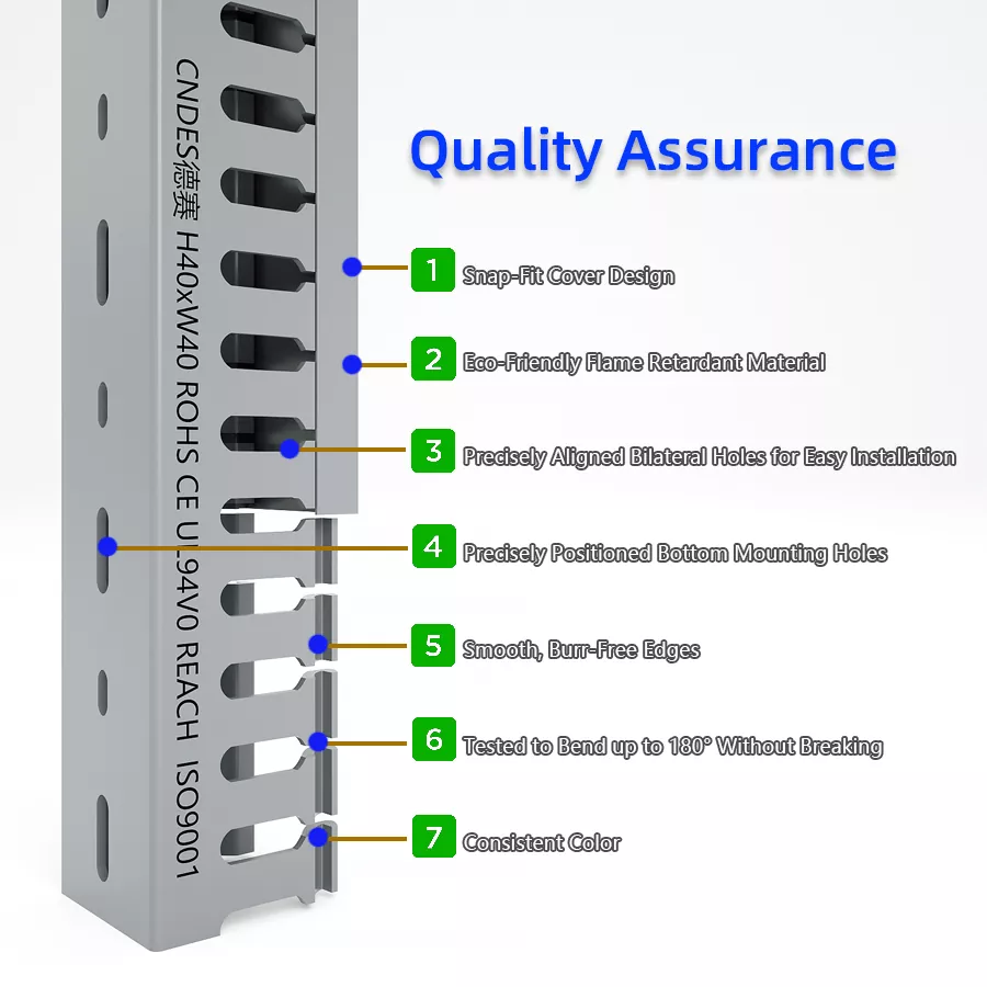 CNDES является надежным производителем и поставщиком кабельных лотков из ПВХ в Китае. Мы обеспечиваем стабильное качество продукции, точное расстояние между пазами и соответствие стандартам UL, CE, RoHS и REACH, что подходит для проектов как внутри страны, так и за рубежом.