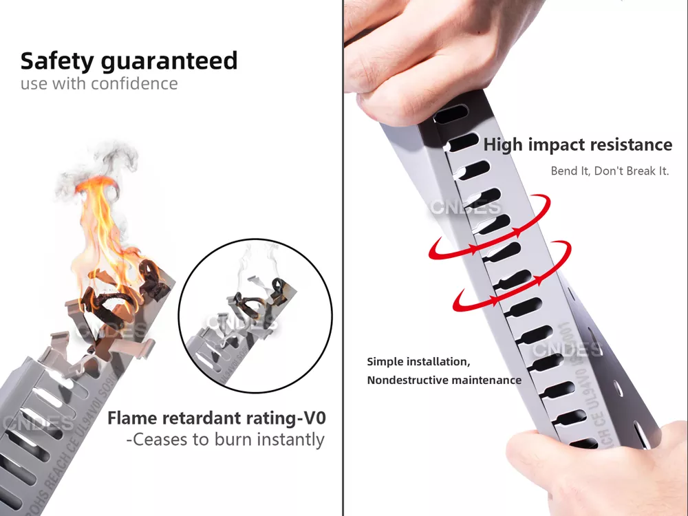 Наш панельный кабельный органайзер из ПВХ с прорезями 80×50 является экологически чистым, огнестойким, ударопрочным и прошел множество авторитетных сертификаций.