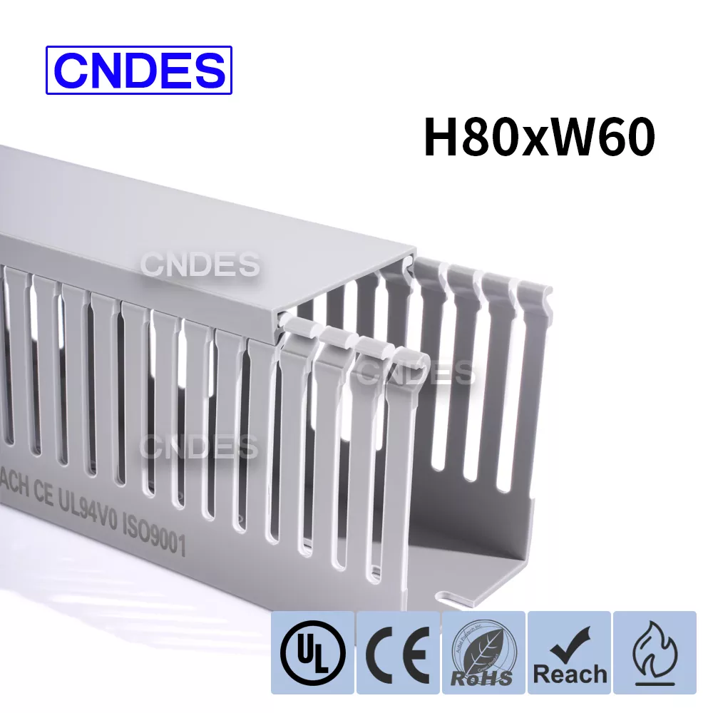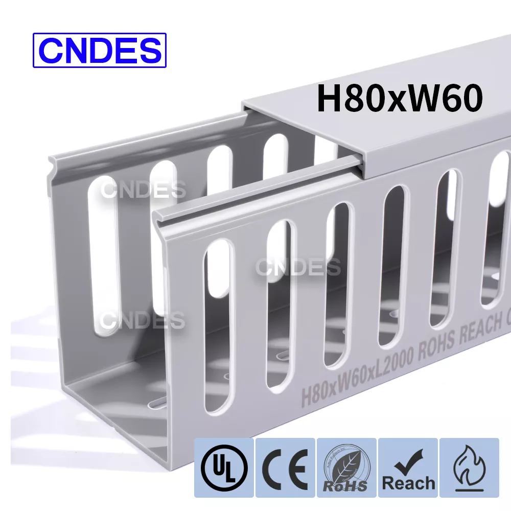 CNDES является ведущим производителем и поставщиком кабельных каналов из ПВХ с прорезями, внесенным в список UL, с конкурентоспособными заводскими ценами! Этот изготовленный по индивидуальному заказу кабельный канал из ПВХ с прорезями размером 80×60 имеет равномерно расположенные открытые прорези с обеих сторон для быстрой прокладки кабеля, заправки резьбы и последующего обслуживания. Расширенные края пазов повышают жесткость конструкции и одновременно увеличивают пропускную способность кабеля. Закругленные края предотвращают повреждение изоляции руками или проводами во время установки. Кабельный канал из ПВХ с прорезями, внесенный в список UL, включает нескользящие крышки, обеспечивающие надежное закрытие и предотвращающие случайное открытие.
