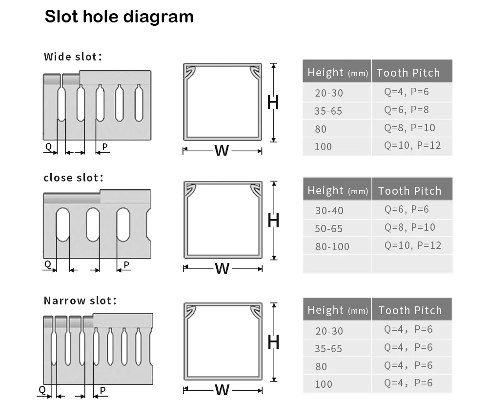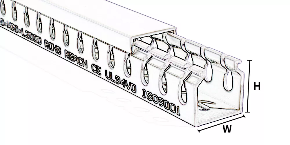 Характеристики кабельного лотка выражаются в виде высоты * ширины, в мм. Сначала определите необходимый размер кабельного лотка, например, высоту 80 мм и ширину 40 мм. Затем выберите ширину выходного отверстия в зависимости от толщины проводки: широкие зубцы (8 мм) или мелкие зубцы (4 мм). Рекомендуется, чтобы фактический кабель занимал не более 70% пространства лотка.